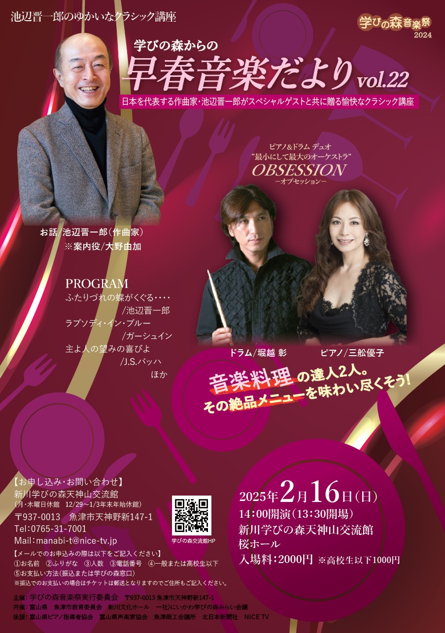 | 会場 | 新川学びの森天神山交流館 桜ホール (富山県魚津市天神野新147-1) |
