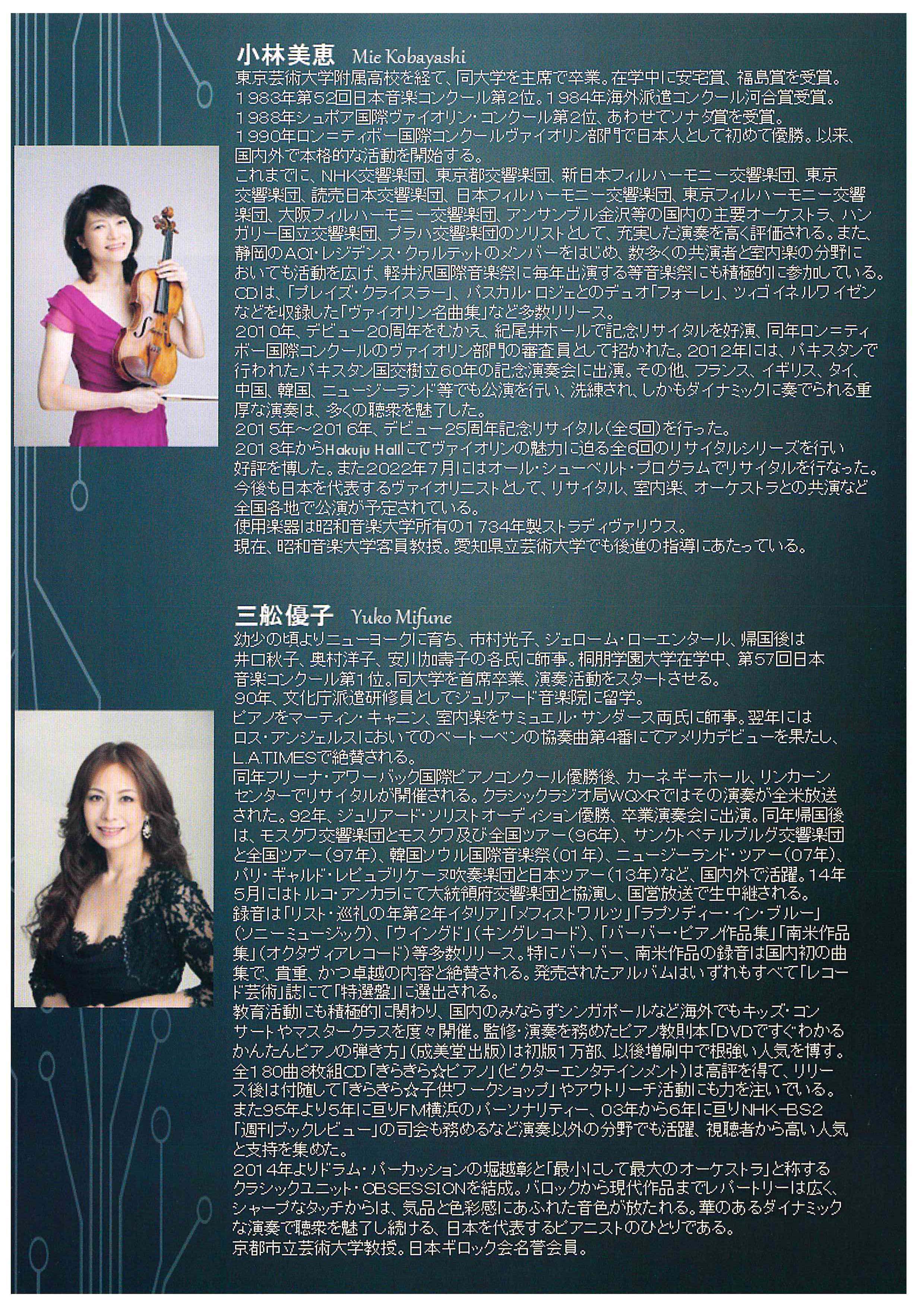 | 出演 | 小林美恵 (vaiolin) 三舩優子 (piano) |